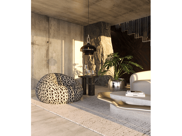 Pouf de alta calidad con relleno granulado con pluma de Ganzo, material lavable y resistente.